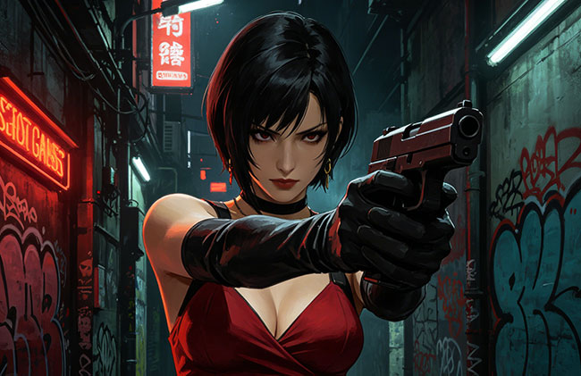 Ada est intelligente, dangereuse et élégante, et maintient toujours une distance émotionnelle. Sa courte chevelure noire, sa robe rouge à fente et son étui de pistolet sur la cuisse ne sont pas seulement des éléments de design, mais aussi des parties importantes de son identité.